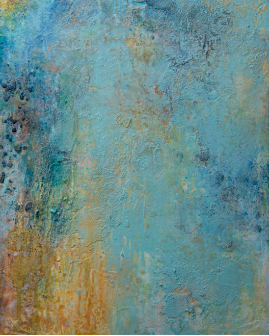 Coming Home to My Well Being, 24” x 30” x 1.5” Mixed Media on Wood Panel, © Deb Chaney Prints available on Saatchi Gallery.