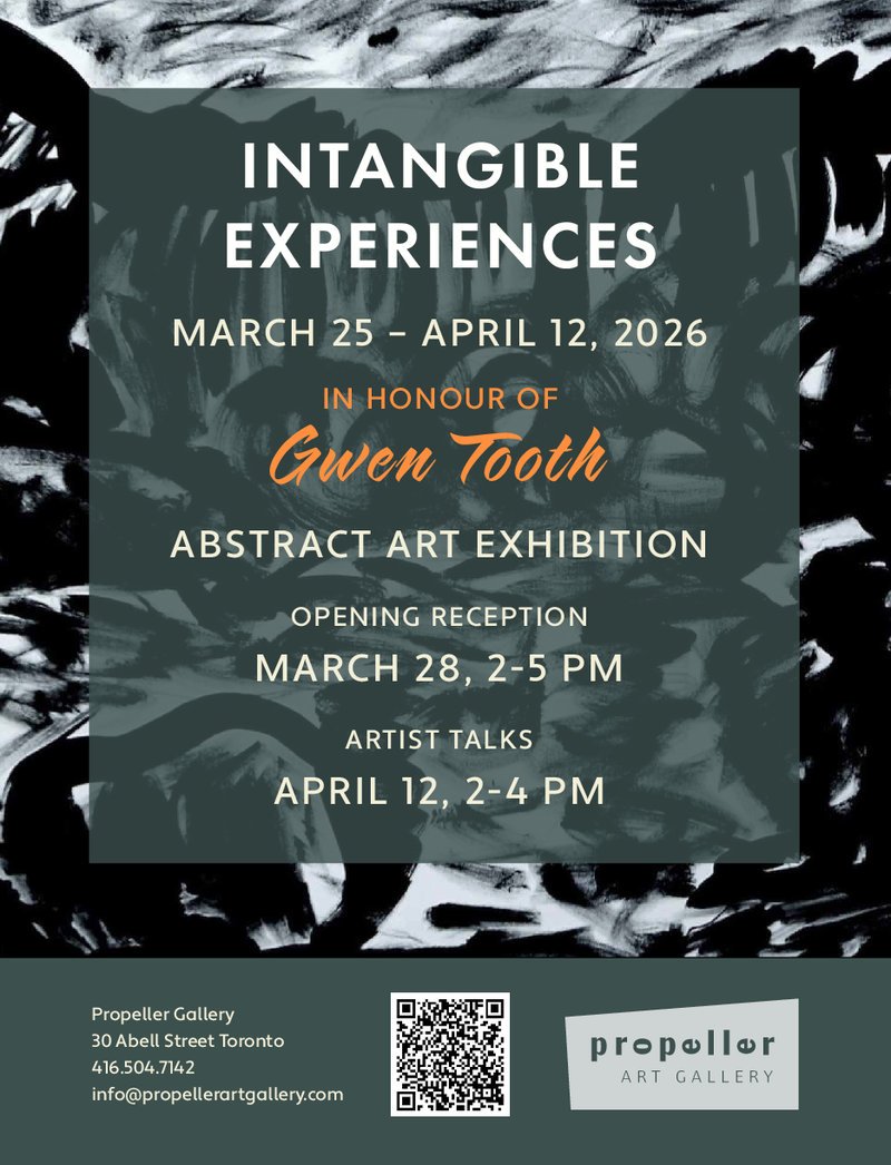 /This March, Propeller Art Gallery in Toronto is hosting a group art exhibit to pay tribute to the late Canadian painter Gwen Tooth (1945–2025). To celebrate Gwen’s talent for expressive, experimental painting, the Intangible Experiences exhibition explores how abstract art communicates what is not easily done with words.